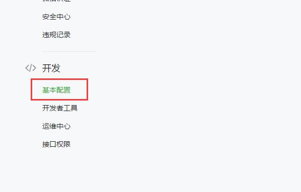登录微信公众号 https://mp.weixin.qq.com/,在左侧找到 [ 开发 ] - [ 基本设置 ] ,如图: