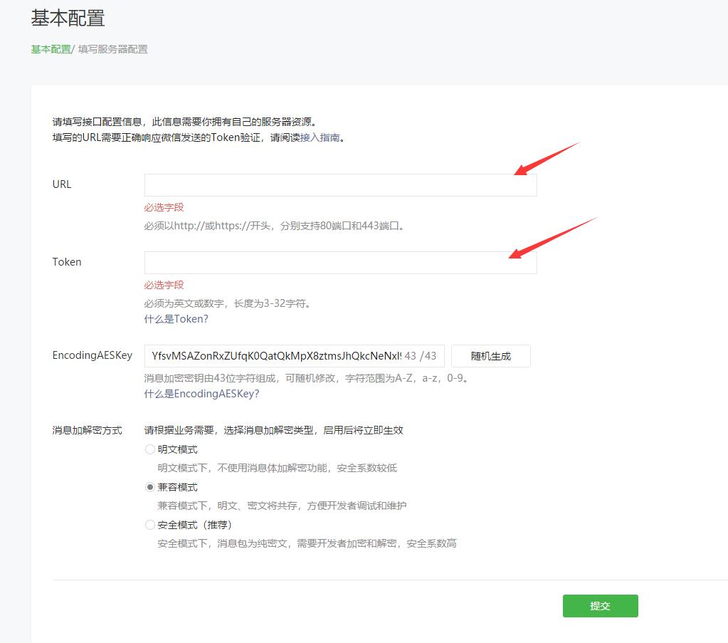 分别填写之前在网站后台获得的信息,最后提交,如图: