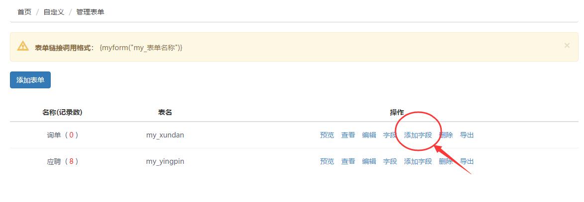 提交后,生成一个新表单,但表单内容为空,如何向表单添加字段可参考如图: