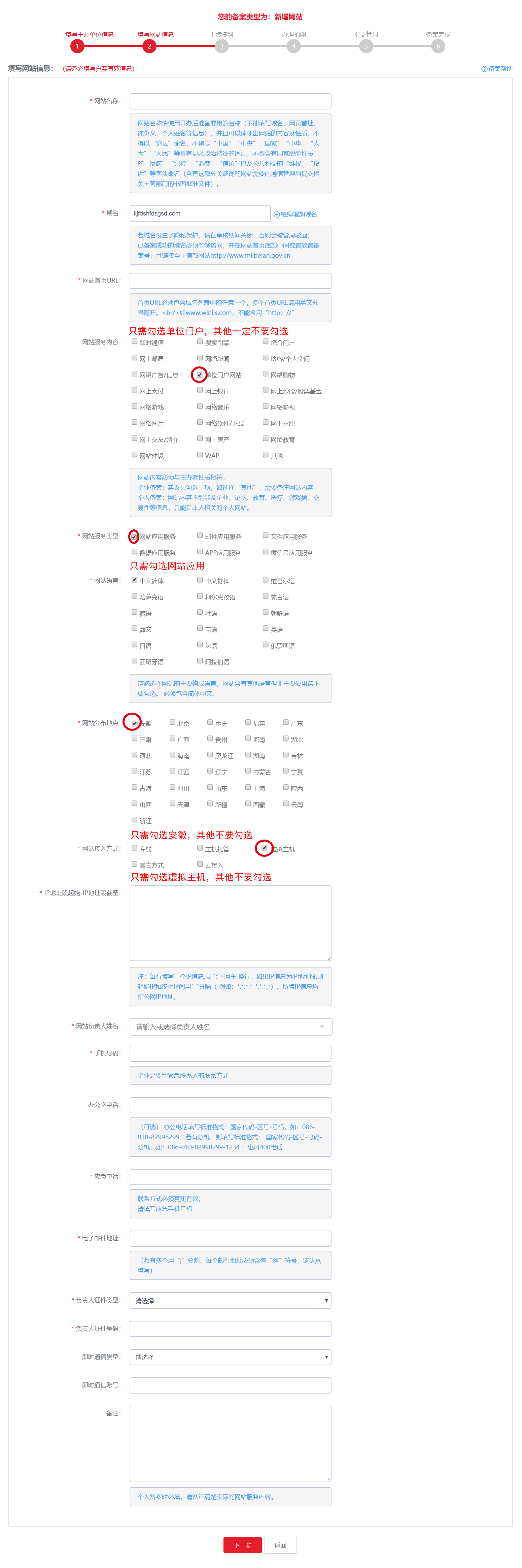 1)如不需添加多个网站信息,填写完成请直接点击“ 下一步 ”