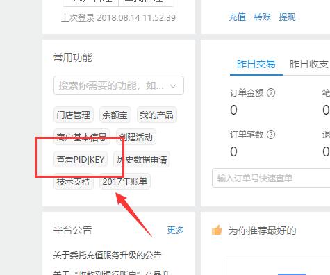 (4)MD5密钥:登录 https://b.alipay.com 后,左侧 [ 查看PID|KEY ]