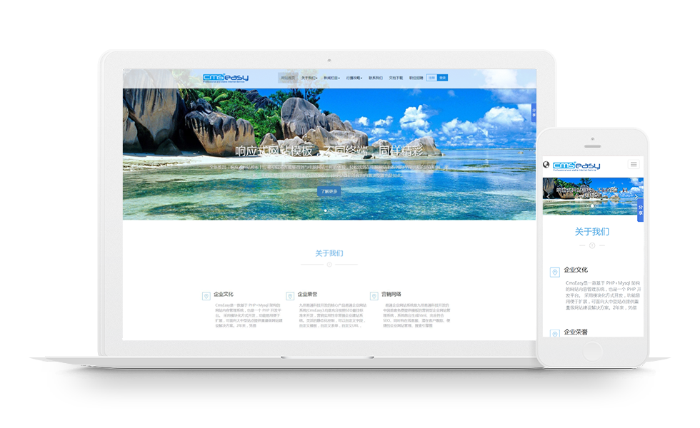 响应式网站模板无需设置其他终端,直接调用后台内容,使用简单方便。 但若需要独立的手机端,后台也可以开启手机端独立模板。