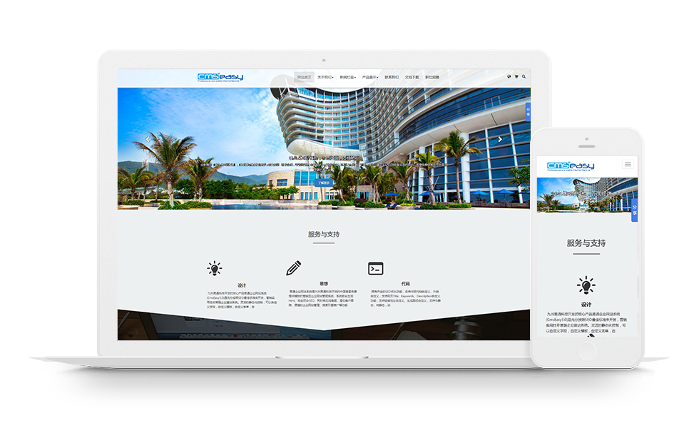 响应式网站模板无需设置其他终端,直接调用后台内容,使用简单方便。 但若需要独立的手机端,后台也可以开启手机端独立模板。