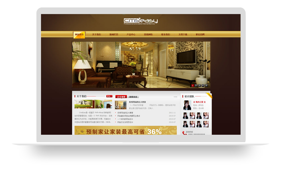cmseasy企业网站管理系统提供建筑装饰公司、民宿酒店设计公司等装修设计类企业网站模板。该模板适用于各类建筑装饰公司、民宿酒店设计公司等开展网络营销使用,自带手机端网站模板,电脑操作一站更新,企业营销一步到位。